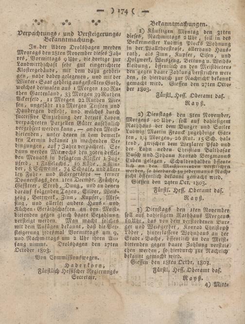 Giessen den isteu Vctbr. 1803.