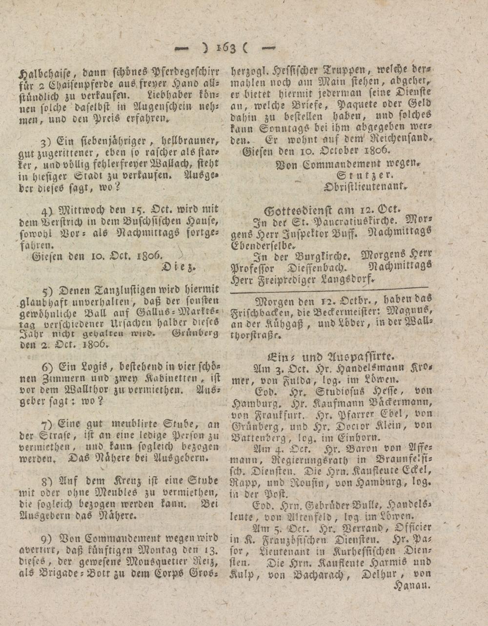 Giesen den 10. October 1806.