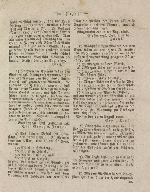 Giessen den 2/ten August 1806.