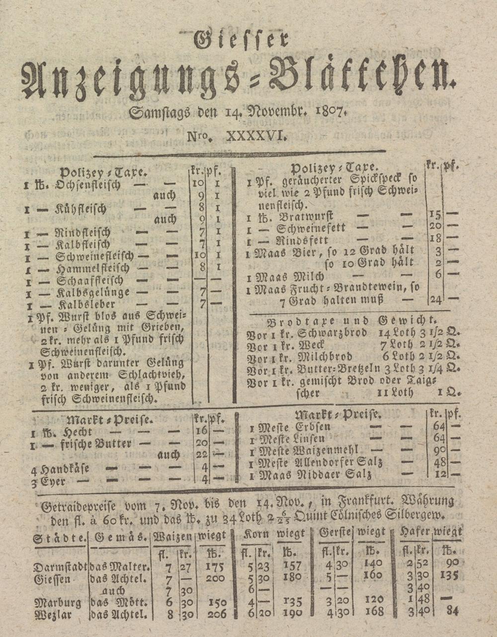 Samstags den 14« Novembr. 1807.