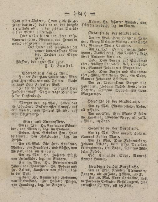 Giessen, den iztenMai 1807» F. T. Chaste L
