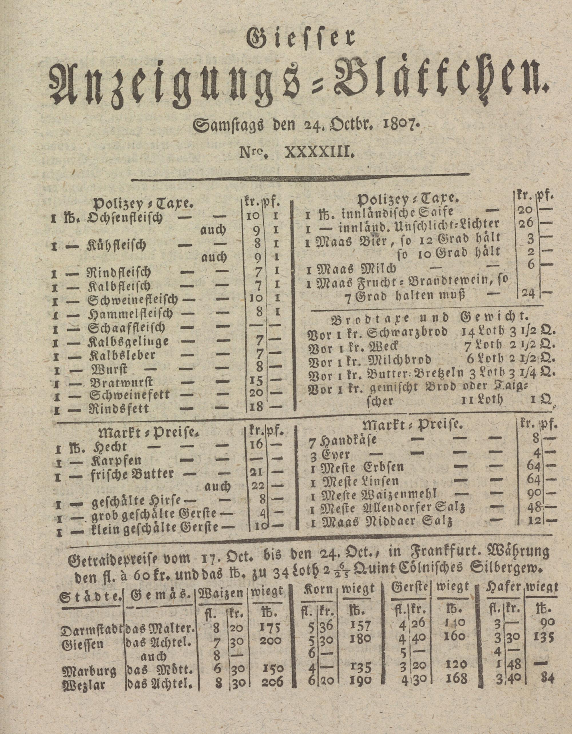 Samstags den 24. Octbr. 1807*