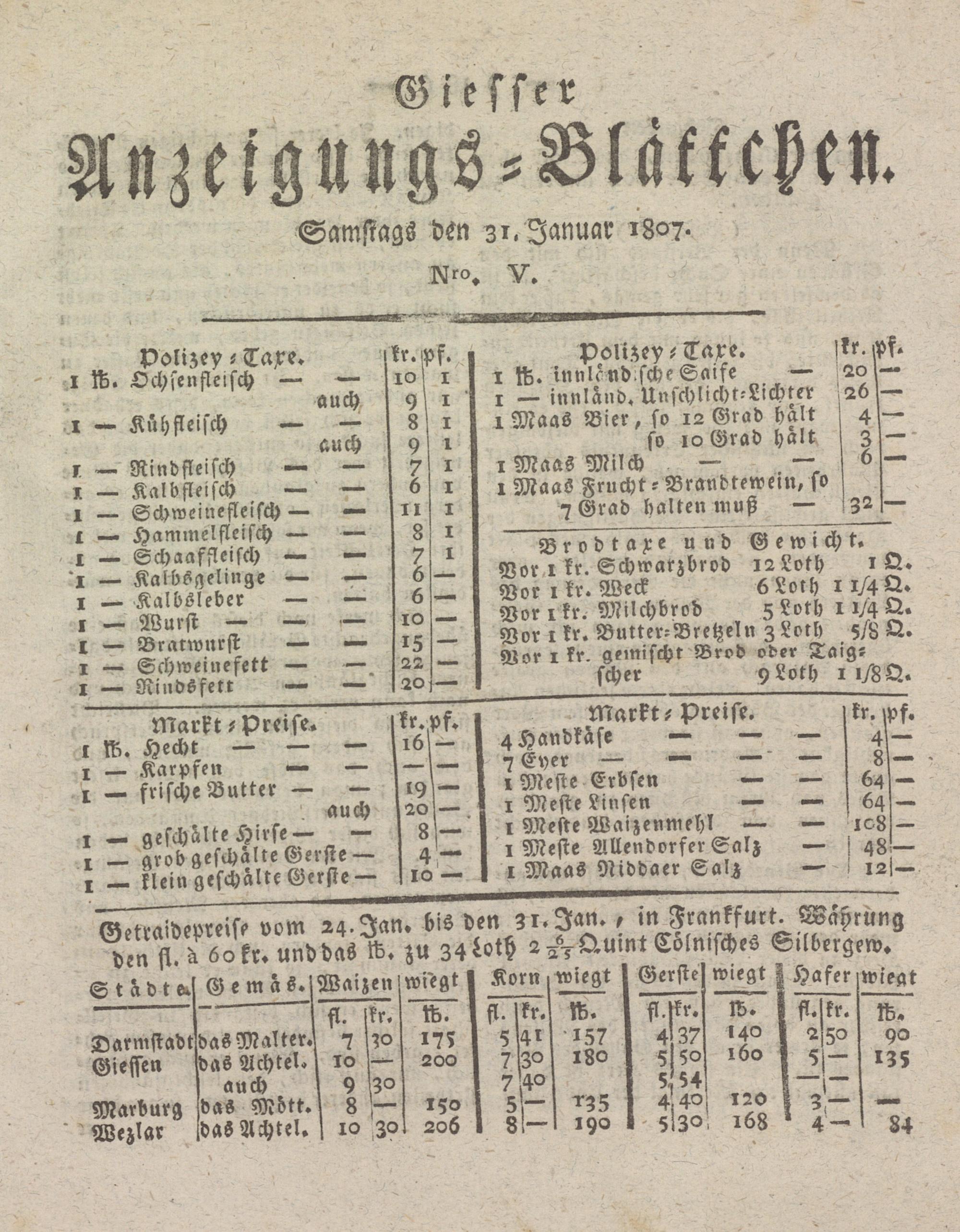 Brodtaxe und Gewich Vor 1 kr. Schwarzbrot) 12 Lvth Vor i kr. Weck 6Loth 1
