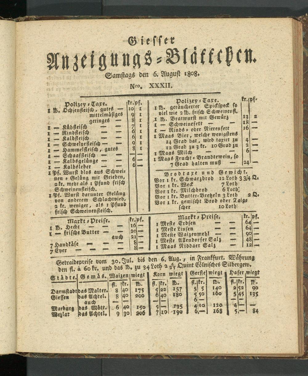 G iesser AnzeMuas-MSktckc«. Samstags den 6. August ißo8>