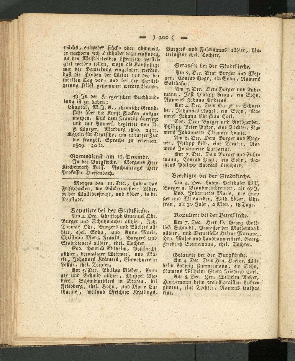 Am 8. Dec. Hrn. Wilhelm Weber, Hauptmann beim 2ten Bataillon Leibre- giment, eine Tochter, Namens Catharine.