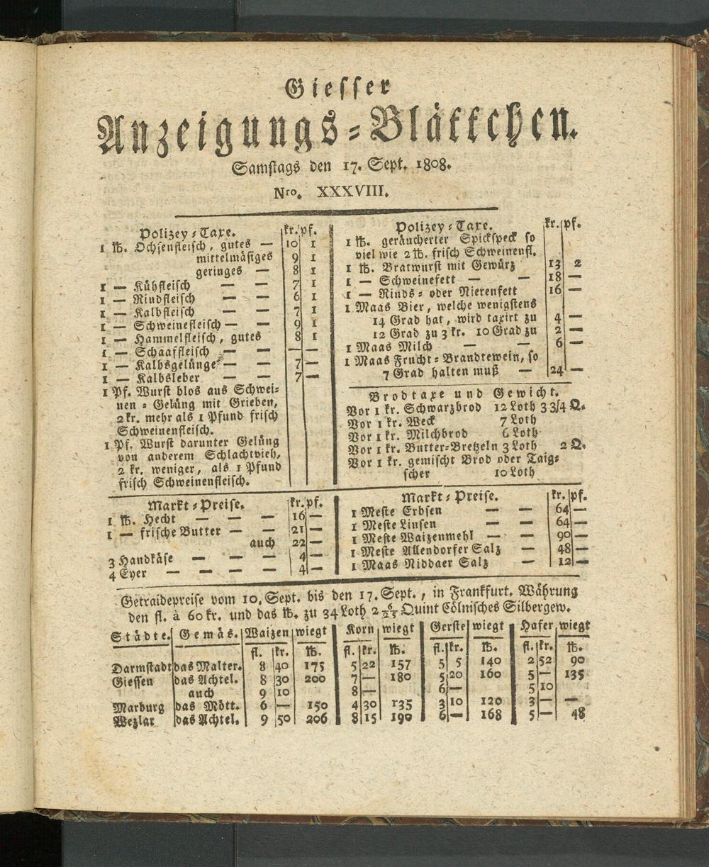Giesser Agzeigullks-Blattckcu. Samstags den 17« Sept. 1808»