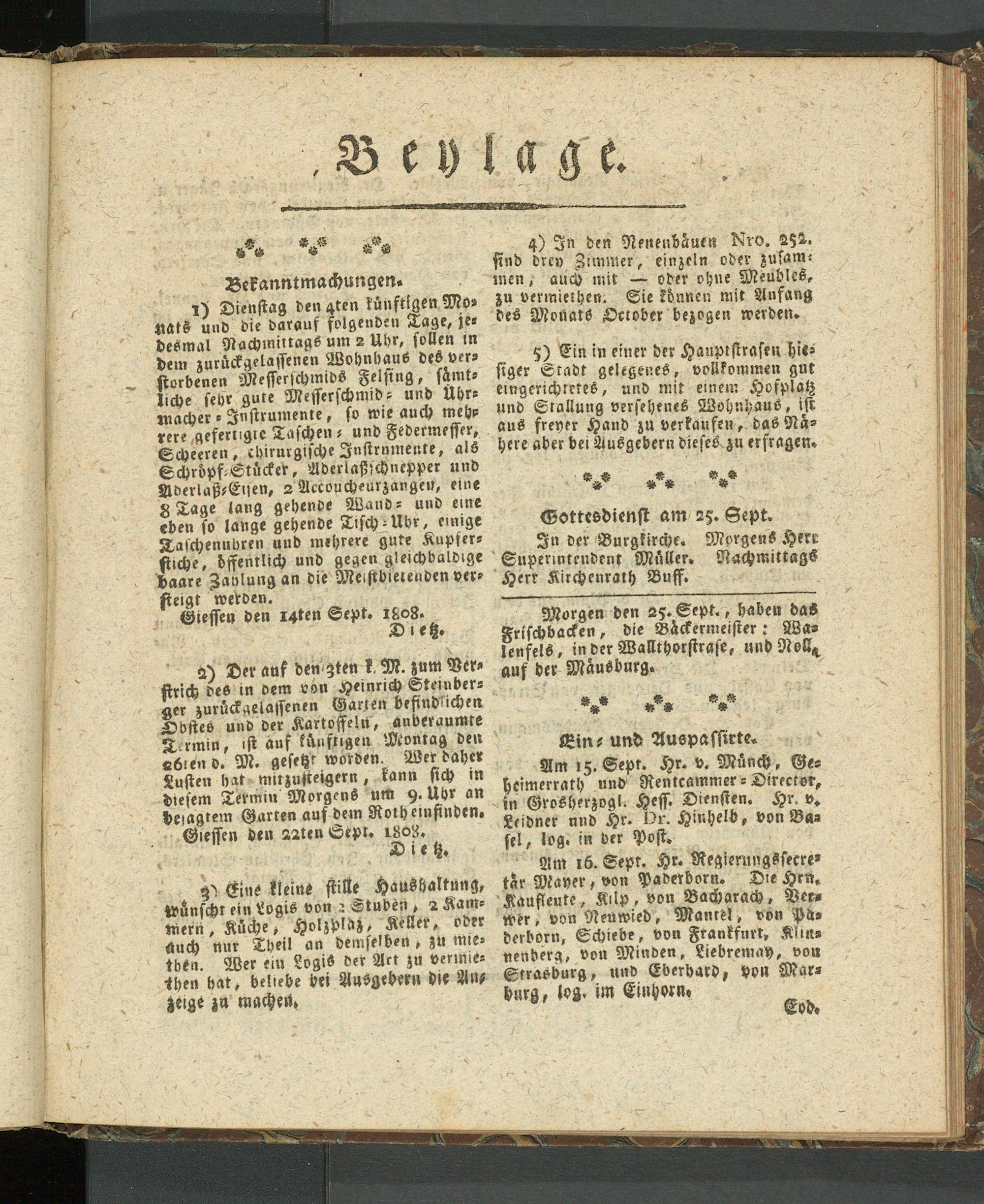 Am iz. Sept. Hr. v. Münch, Geheimerrath und Rentcammer-Director, in Grosherzogl. Hess. Diensten. Hr. v. Leidner und Hr. vi. Hinhelb, von Basel , log. in ber Post.