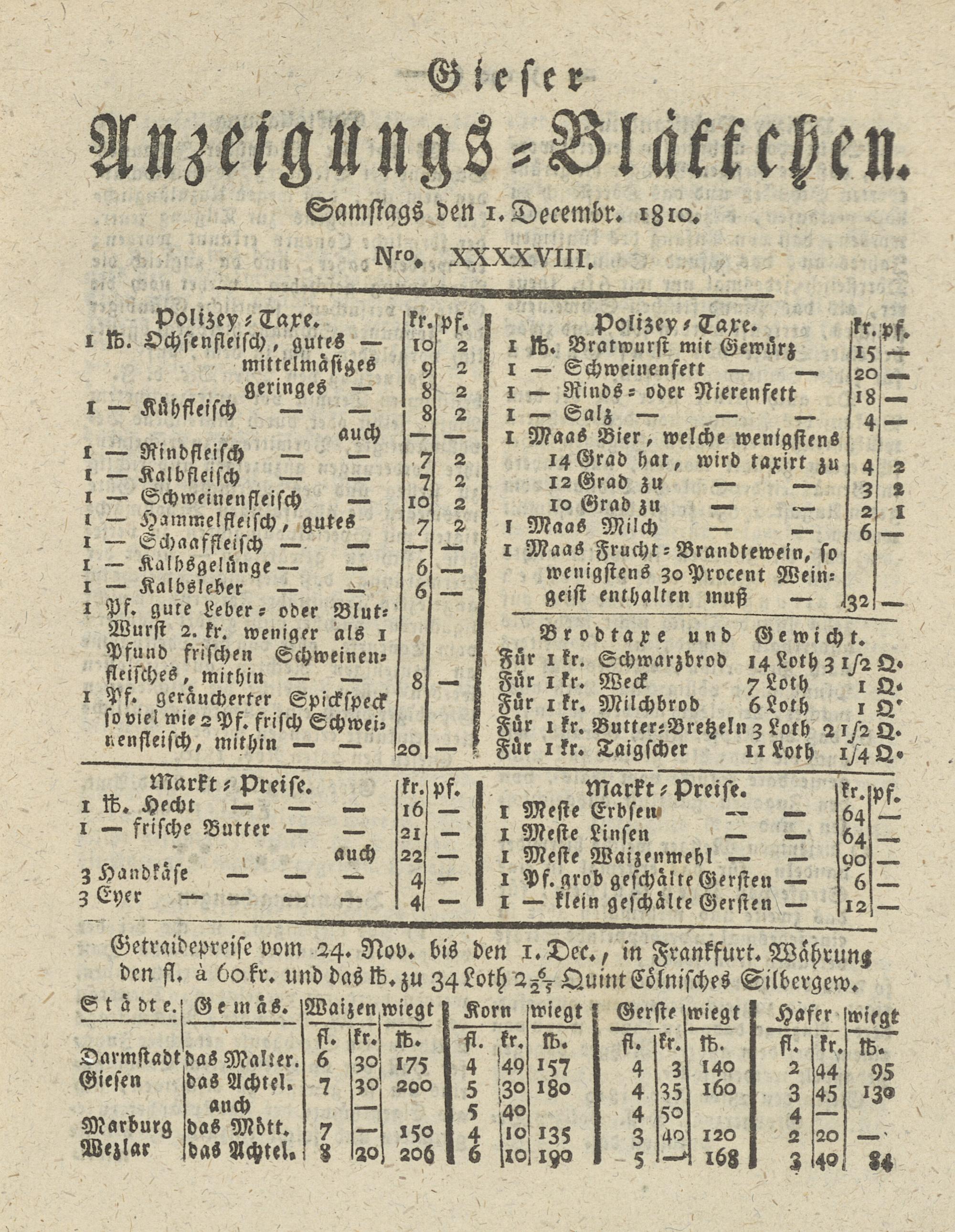 Getraidepreise v°m 24. No», bis den i.Dcc., in Frankfurt. Wäbruni den fl. a Lo kr. und das K. zu 34 koch 2-^O.mmCölmsches Silbcrgew.