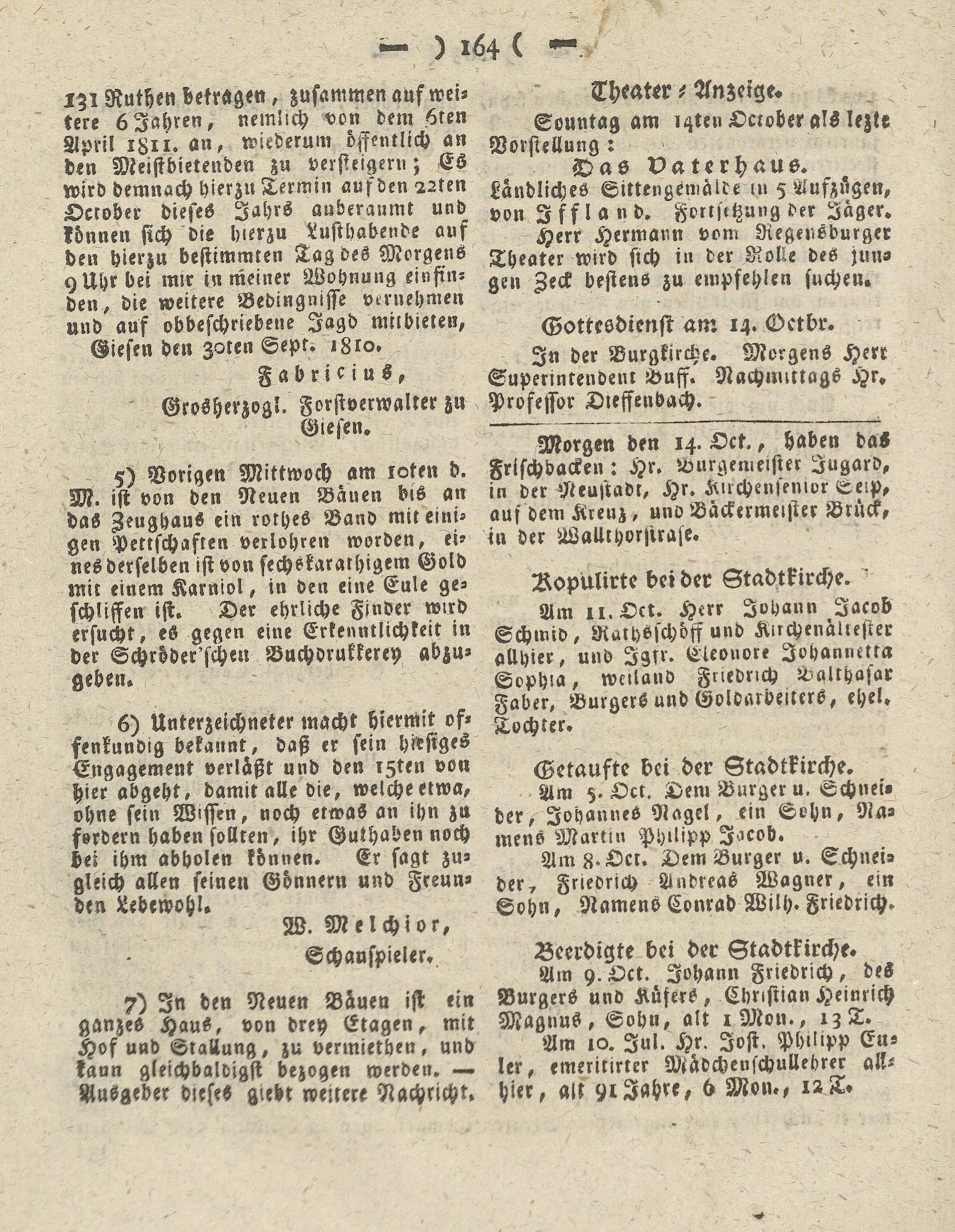 Fabricius, Grosherzogl. Fvrstverwalter z» Giesen.