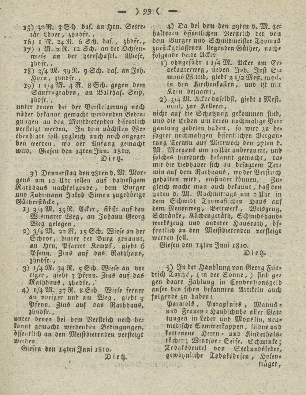 Giesen den igtenJruü 1810.
