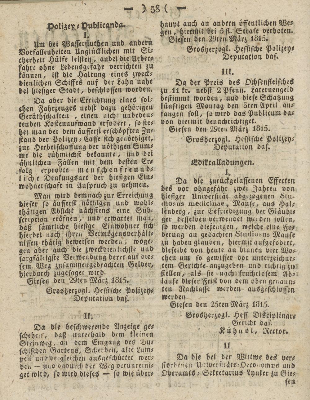 Da die zurückgelassenen Effecten des vor ohngefahr zwei Iahreit von hiesiger Universität «bezogenen Stu. diosus medicinae, Mause, aus Hallenberg , zur Eefrledigung der Gläubiger desselben verwelldet werden sollen, so werden diejenigen, welche eine Fo, derung an gedachten Studiosus Mause zu haben glauben, hiermit aufgesodrrt, dieselbe von heule an binnen vier Wo^ chen um so gewisser vor unterzeichnetem Gerichte anzugcben und richtig zu stellen, als sie nach fruchtlosem Ab-, laufe dieser Frist von dem oben giiiann- ten Nachlasse werden ausgeschlossen werden