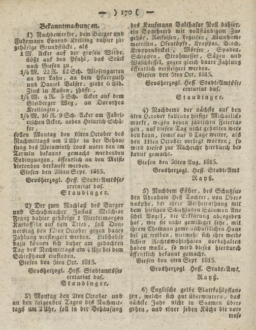 Giesen den 4ten Sept 1815.