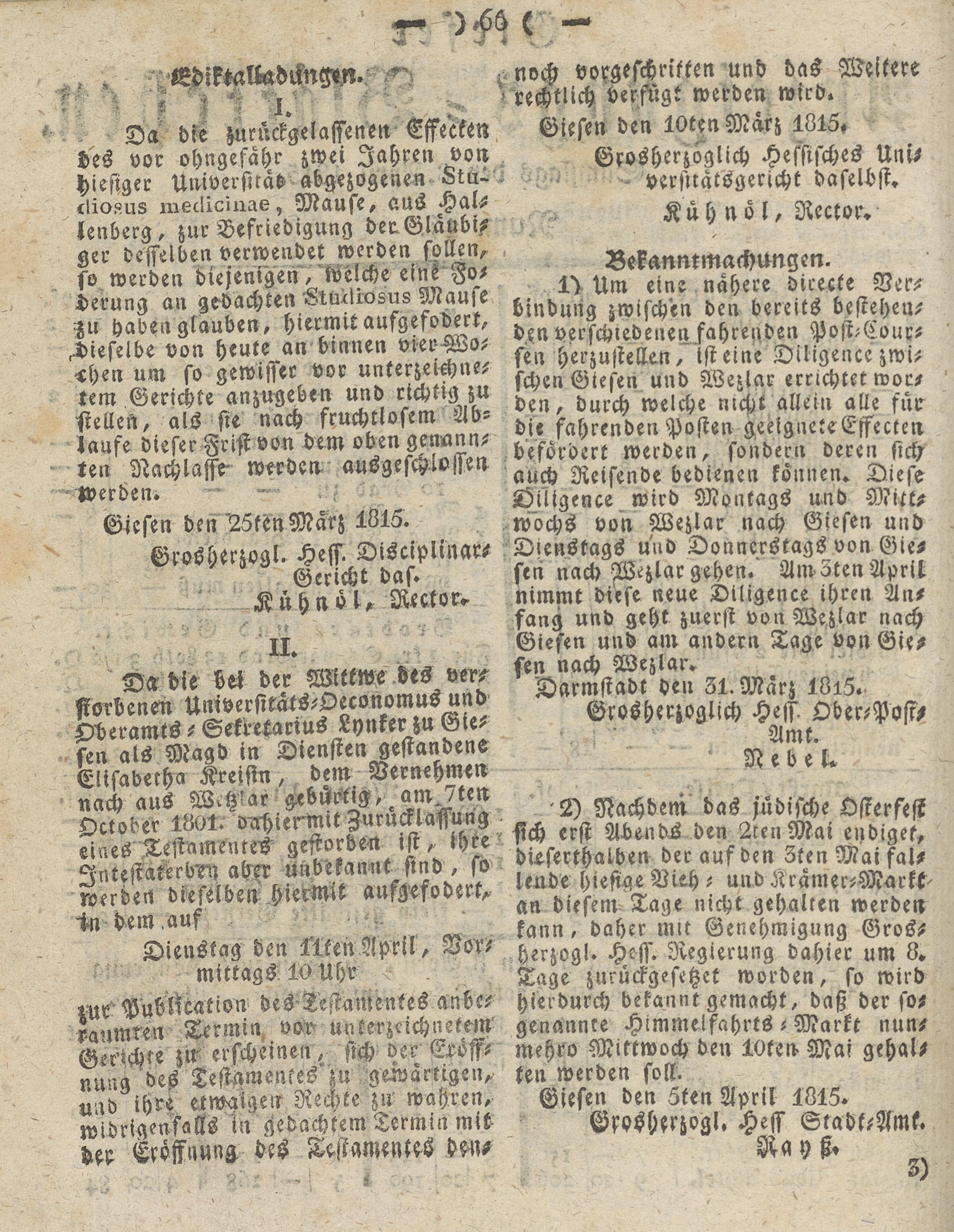 Giesen den 5ten April 1815. Gposherzogl. Hess Stadt-Amk.