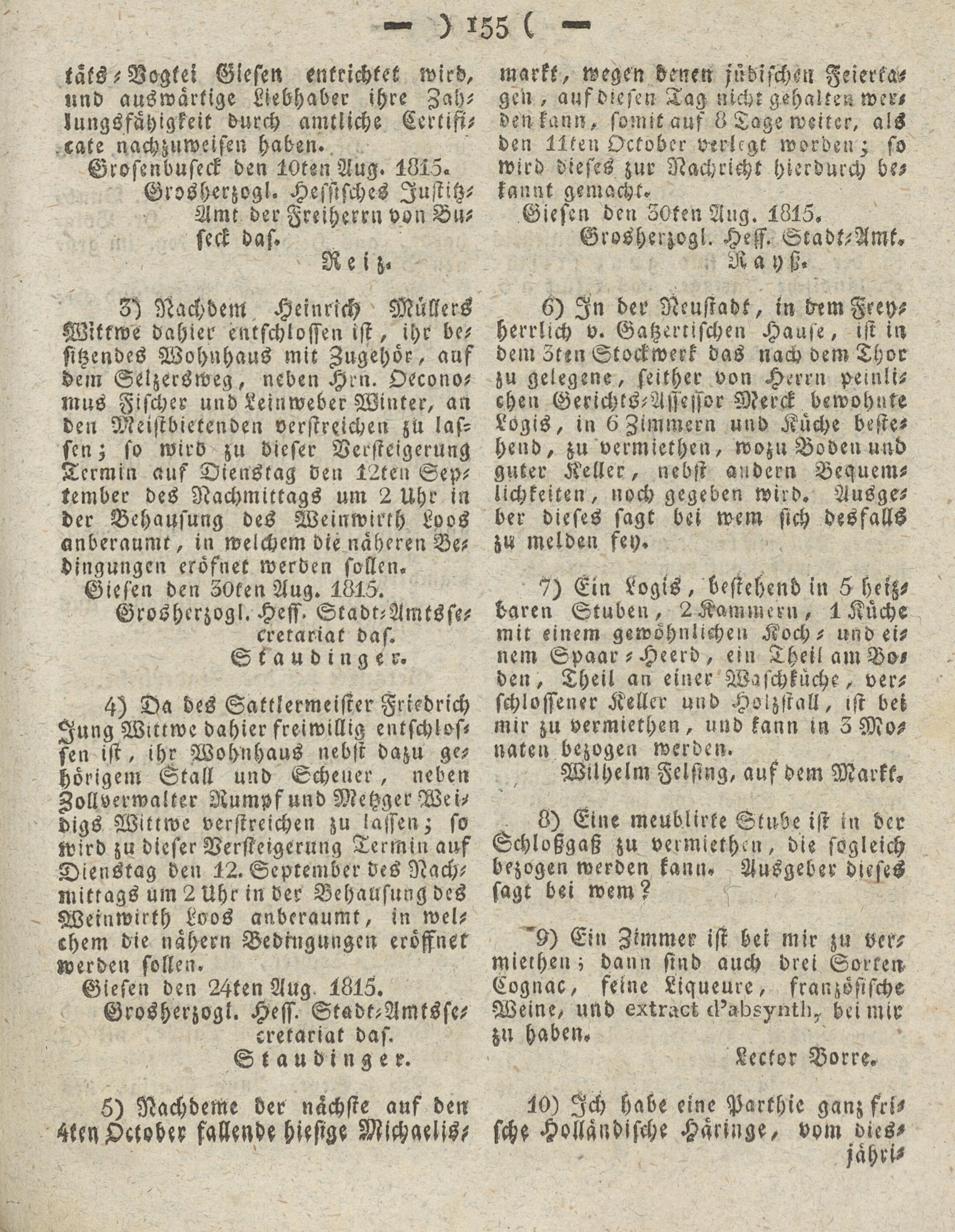 Giesen den 24ten Aug 1815.