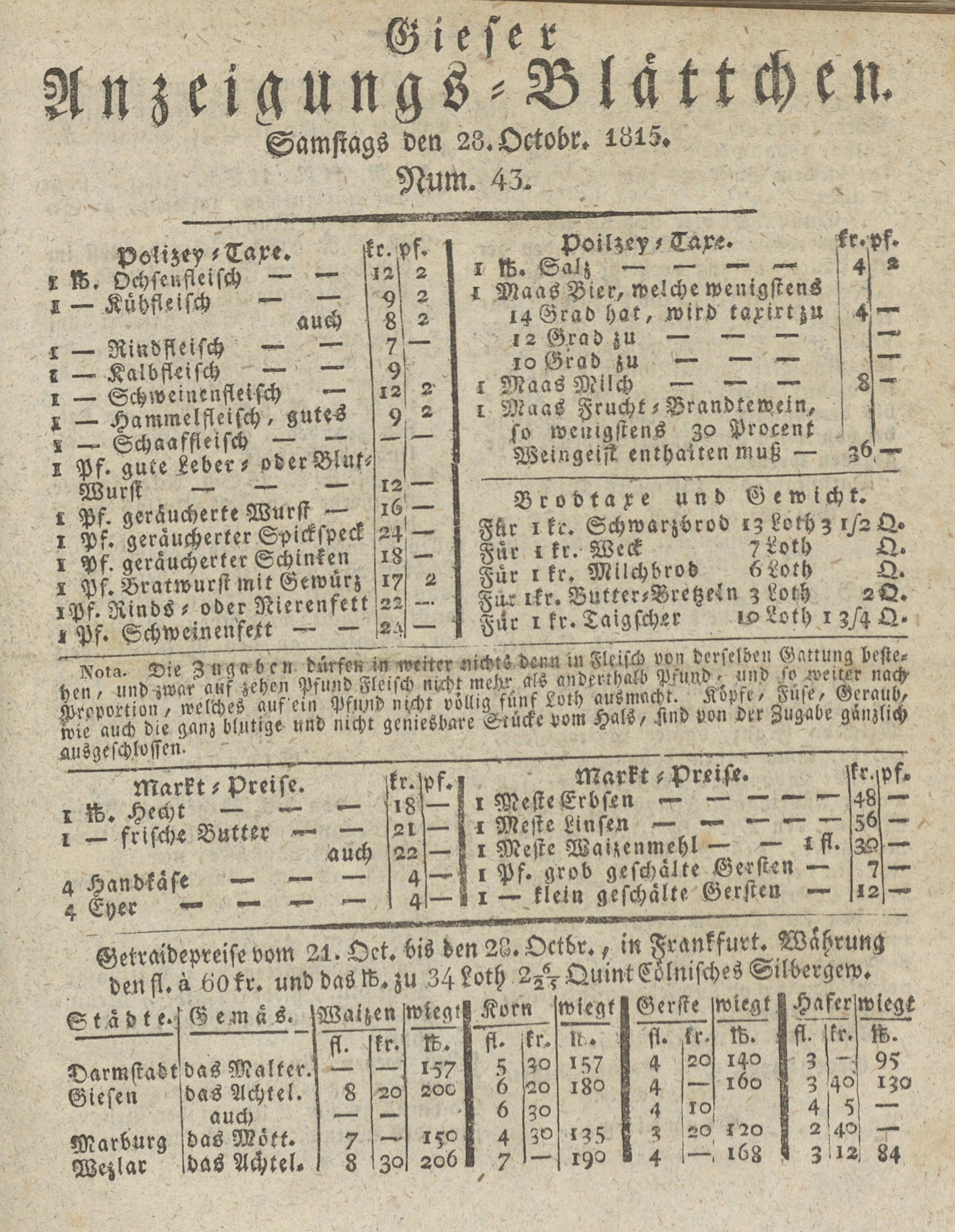 Samstags den 28.Octobr. 1815. Mm. 43.