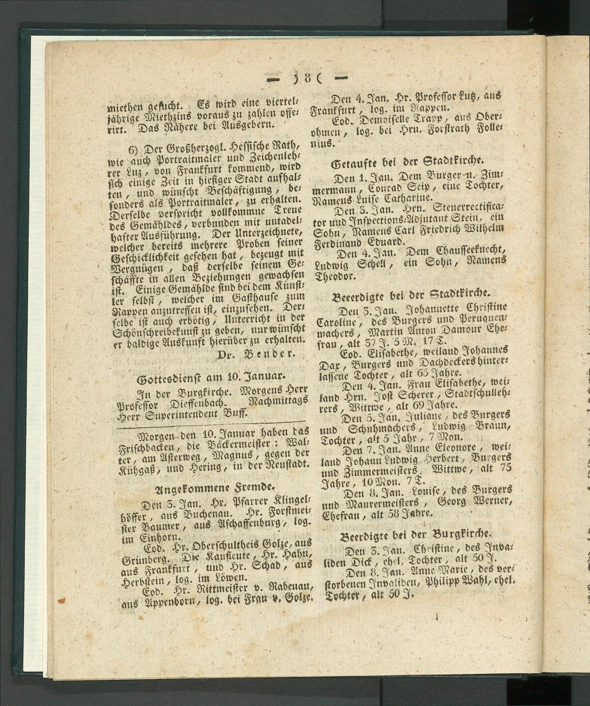Den 4. Jan. Hr. Professor Lutz, aus Frankfurt, log. im Rappen.