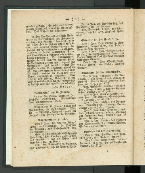 TVctt 3. Jan. Hr. Pfarrer Klingel- böffer' aus Buchenau. Hr. Forstmeister Baumer, aus Aschaffenburg, log. ,m Tmchorn.^ pzh^u-schultheis Golze, aus alrünberq. Di« Kauficute, Hr. Hahn, aus Frankfurt, und Hr. Schad, aus Hcrbsiem, log- Rabenau,