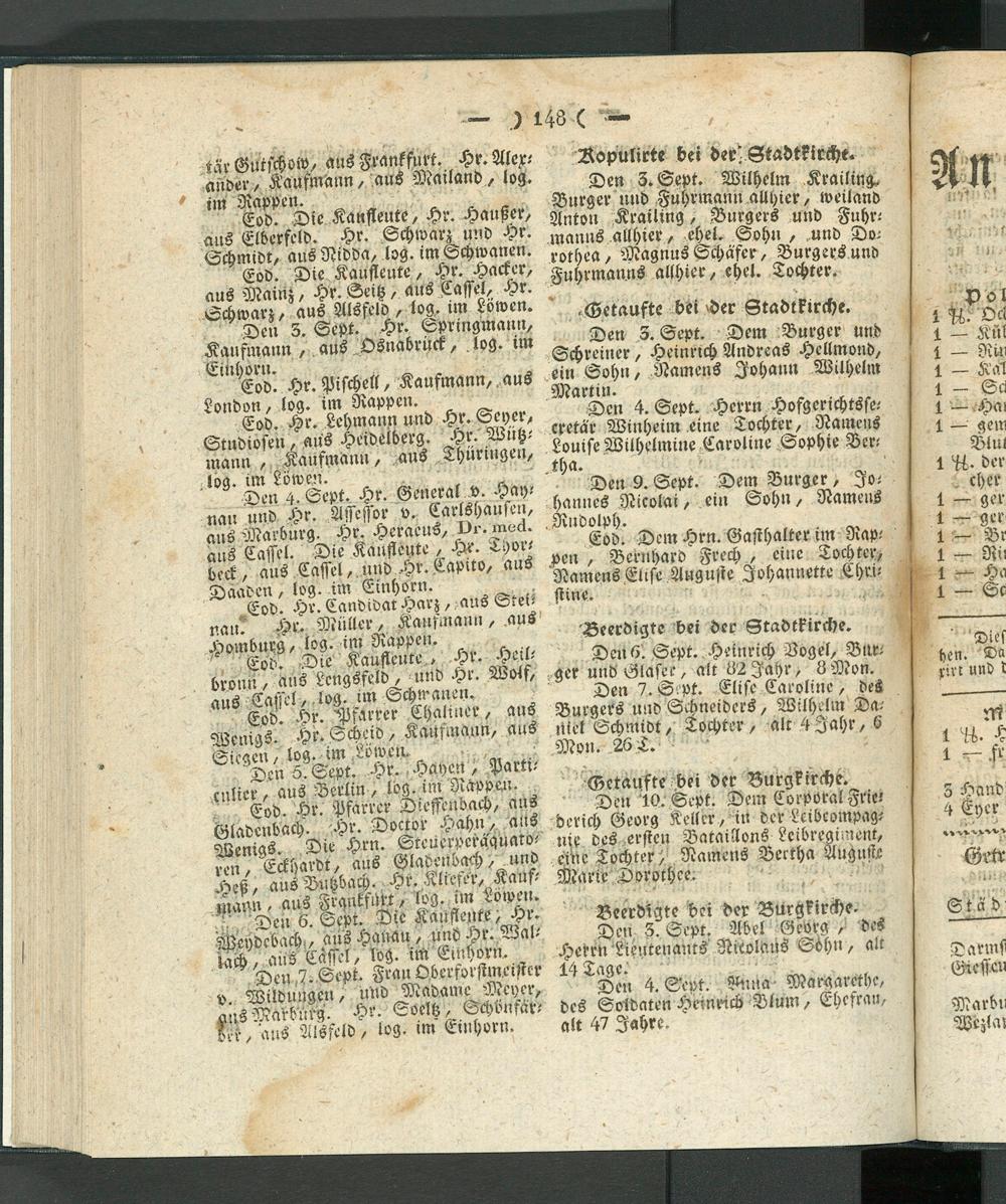 Eod. Die Kaufleute, Hr. Hacker, aus Mainz, Hr. Seitz, ans Cassel, Hr. Schwarz, aus Alsfeld, log. un Löwen.