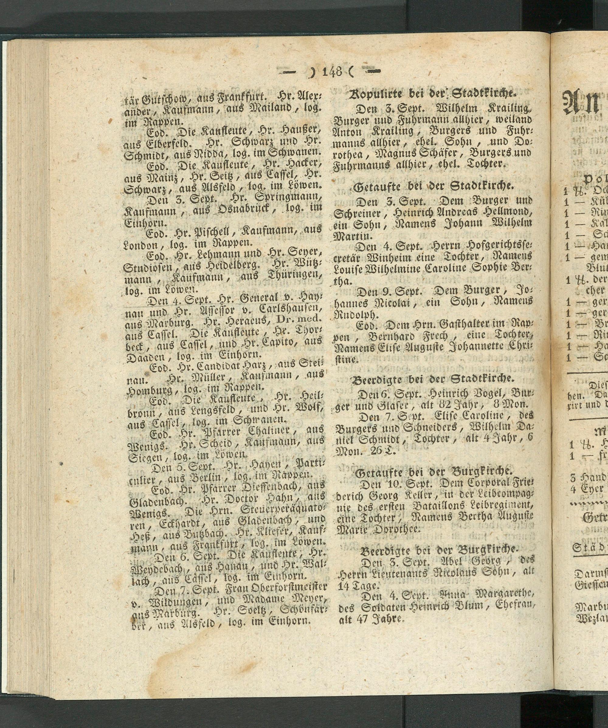 Den 3. Sept. Hr. Sprmgmaun, Kaufmann ,. aus Osnabrück, . log. im