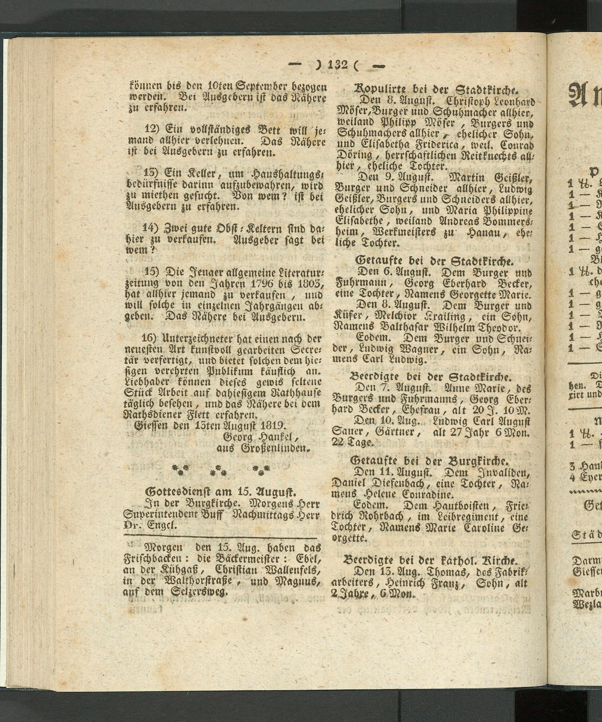 Giessen den 13tcn August 1819.