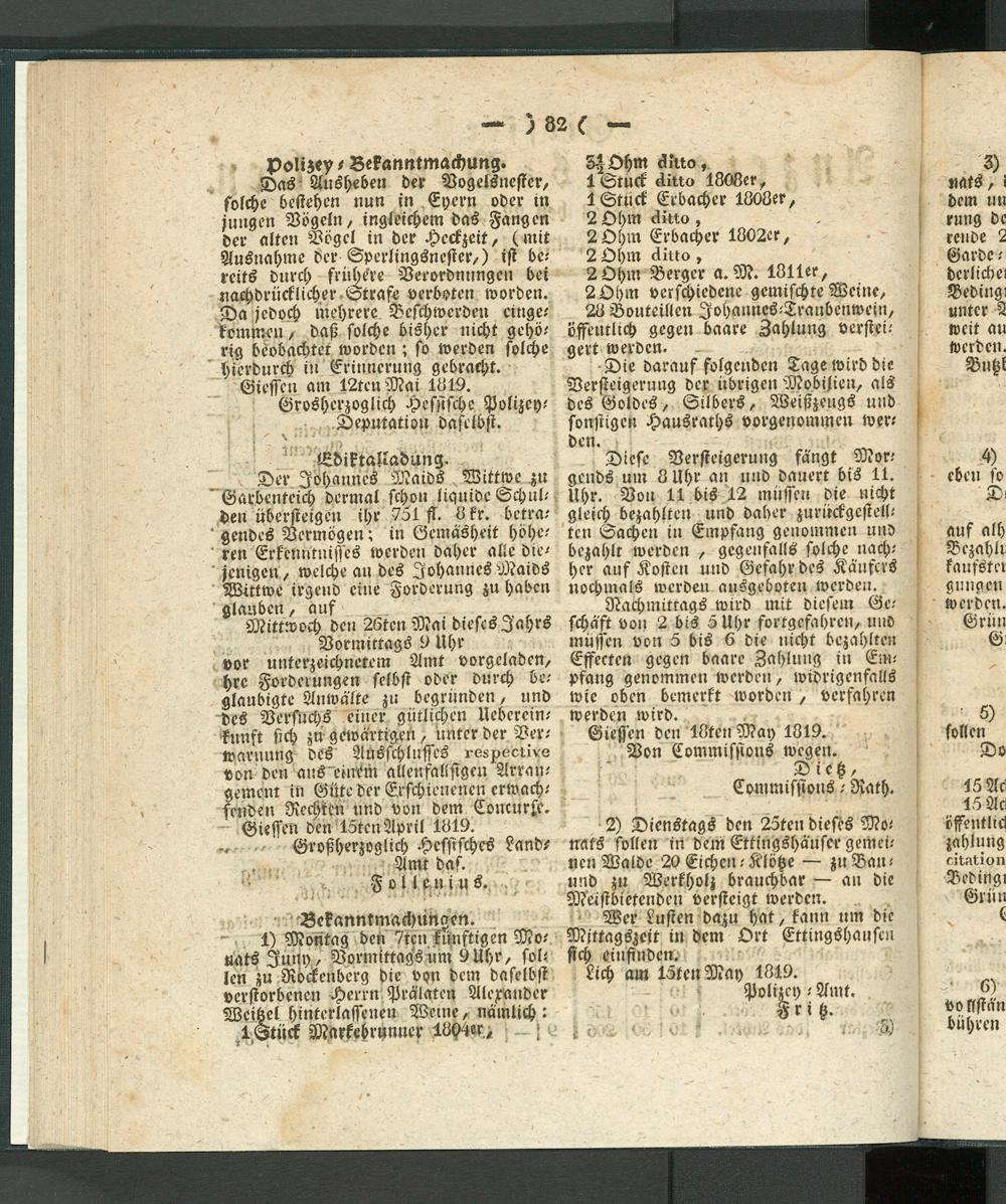 Grosherzoglich Hessische Polizey- Deputation daselbst.