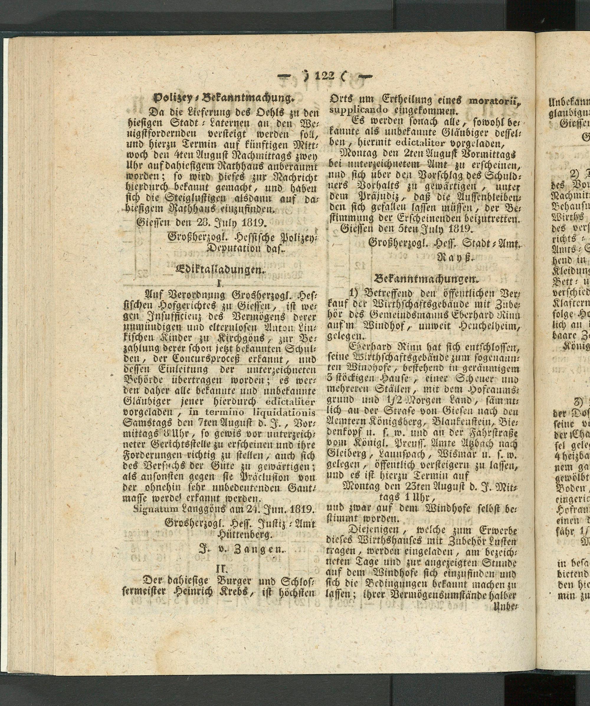 Giessen den ZteuInly 1819.