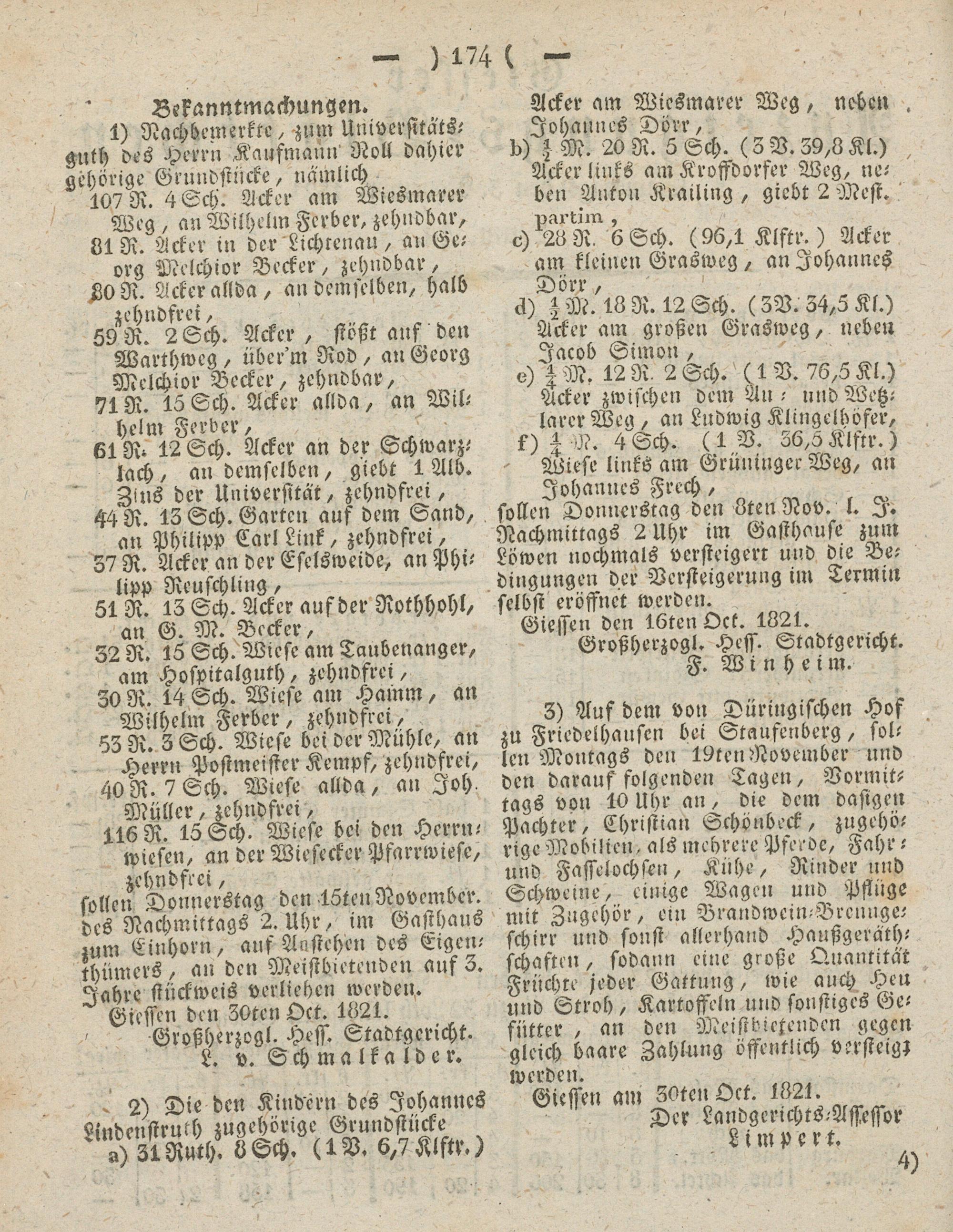 Giessen den löten Oct. 1821. Grvßherzogl. Hess. Stadtgericht.