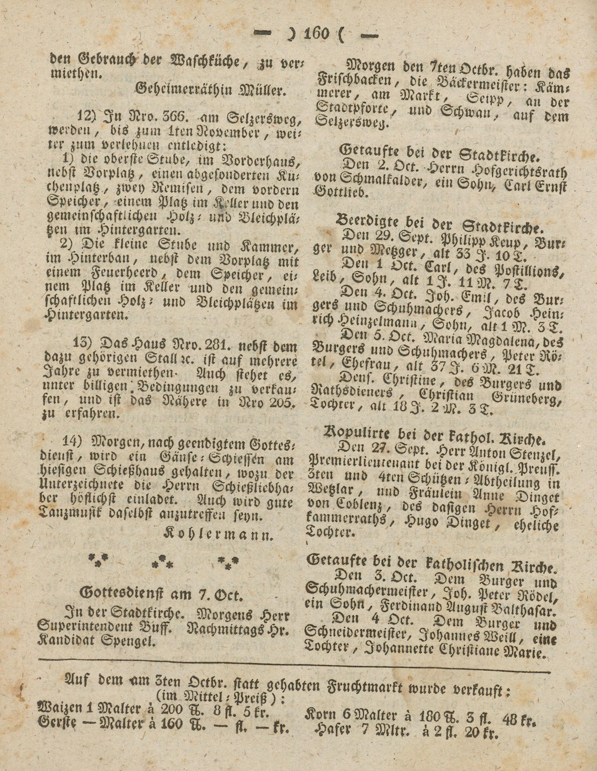Auf dem «m Zten Oetbr. statt gehabten Fruchtmarkt wurde »erkauft: EMe"? Matter L160 I' 8 Mtr". Korn «Matter a 180 'S. 3 ff. 48 kr.
