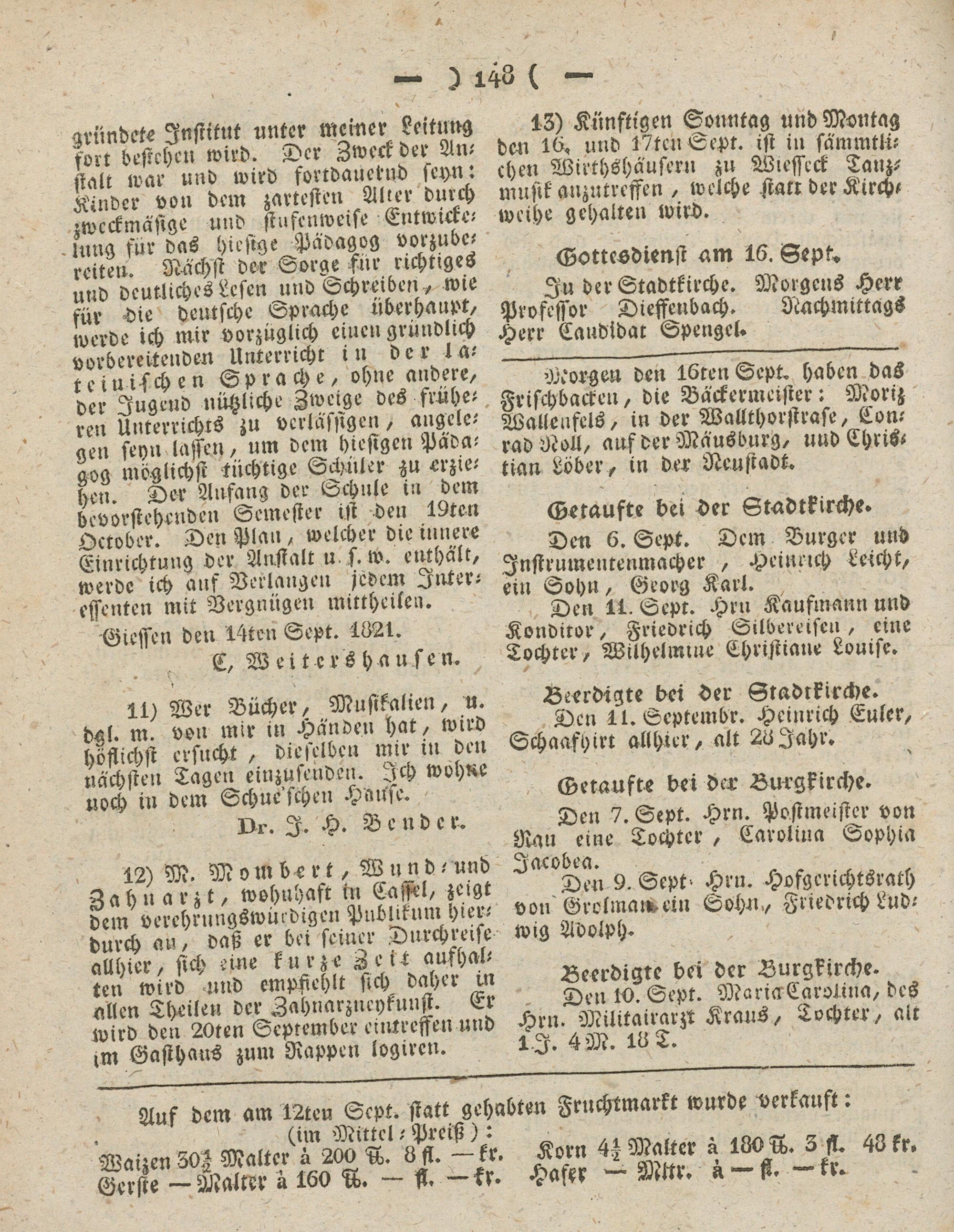 Auf dem am 12te» Scpt. statt gehabt«, Frachtmarkt wurde verkauft: Waizen M K°ru «z Malter i,180®. 3 ff. 48 fr.