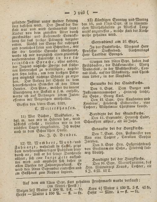 Ju der Stadtkirche. Morgens Herr Professor Dieffenbach. Nachmittags Herr Caudidat Spengel.