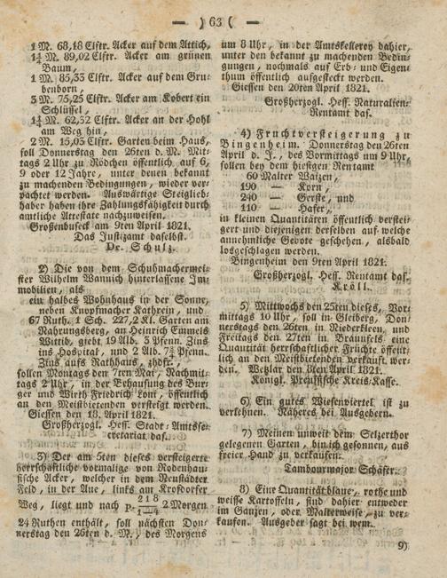 Giessen den 2Oten April 1821.