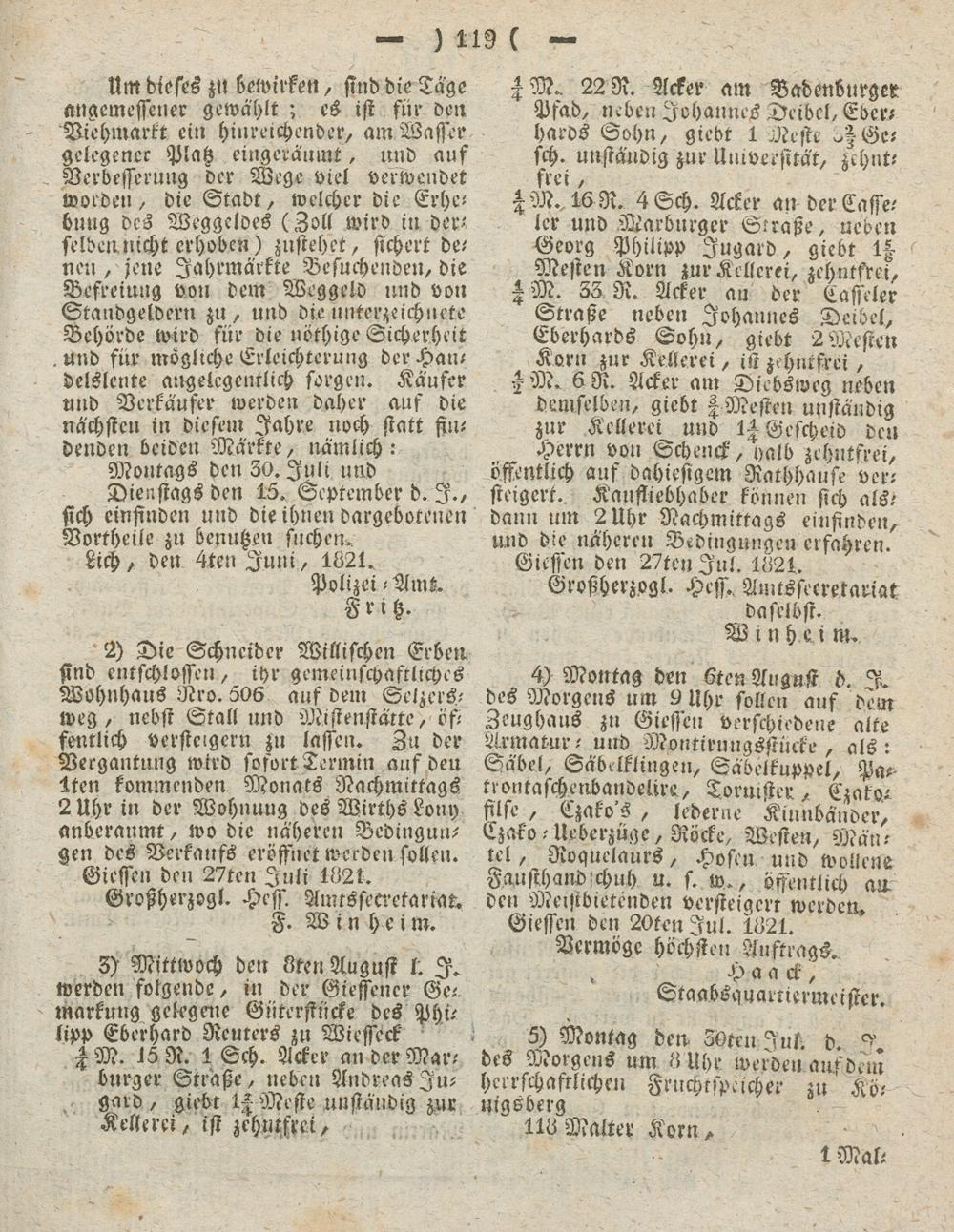 Lich, den 4ten Juni, 1821., Polizei - Amt.