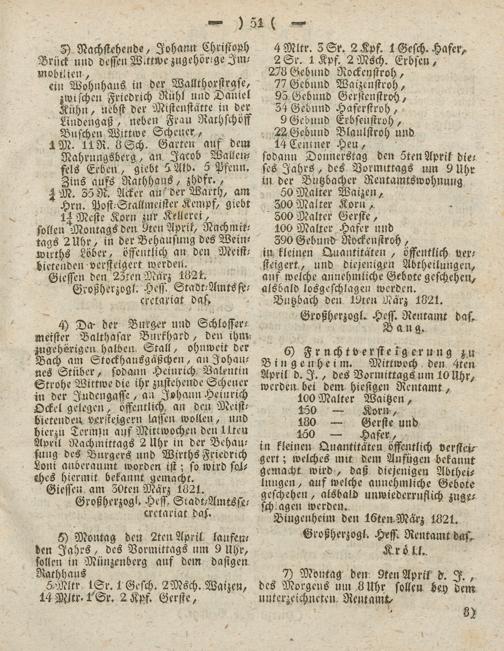 Giessen den 2Zteu Marz 182t Großherzogt. Hess. Stadt-Amts ft/ cretariat das»