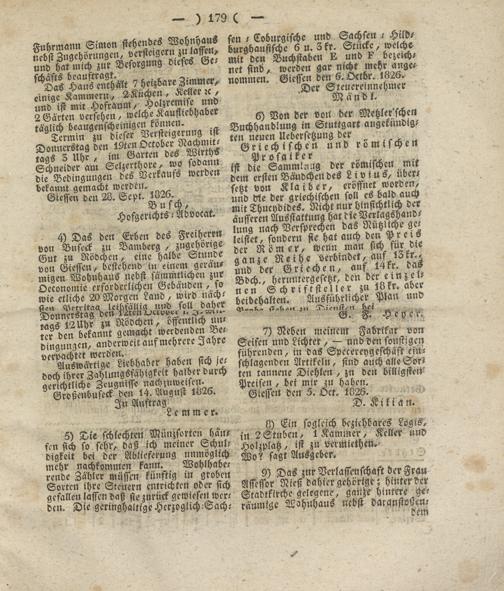 Giessen den 28. Sept. ^"26.^ Hofgerichts-Advocat.