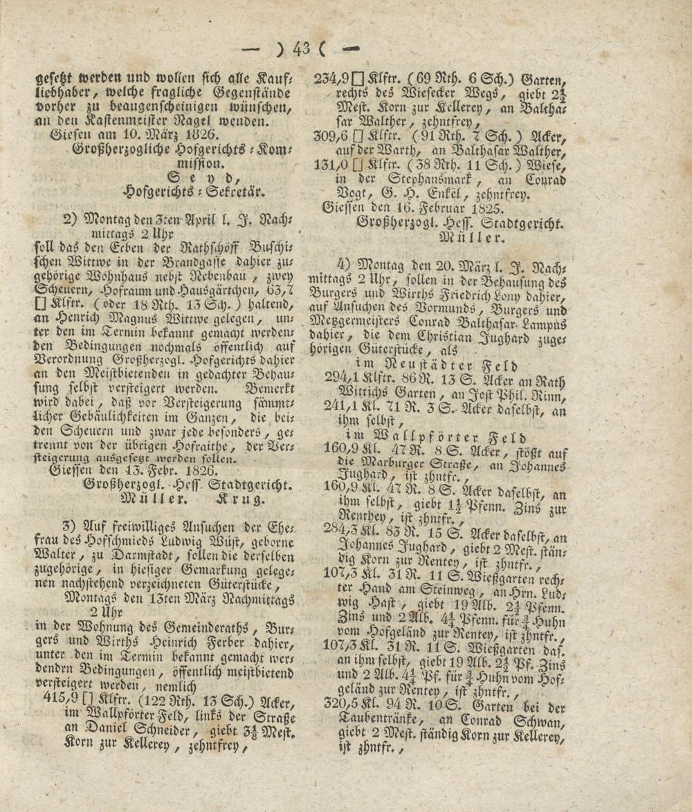 Giessen den 13. Fcbr. 1826.