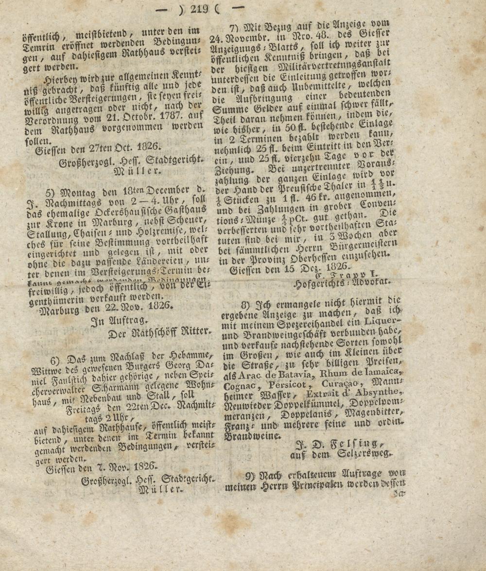 ÄÄKVäS »erbeffertenunb sehrX tuten sind bei nur, tu 2. .„„iNern bei sämmtlrcheu Herrn Virrgerm st^ in der Provinz Oberheffen emzns ) ' Giesse» den 15 D-^ l»2ü.