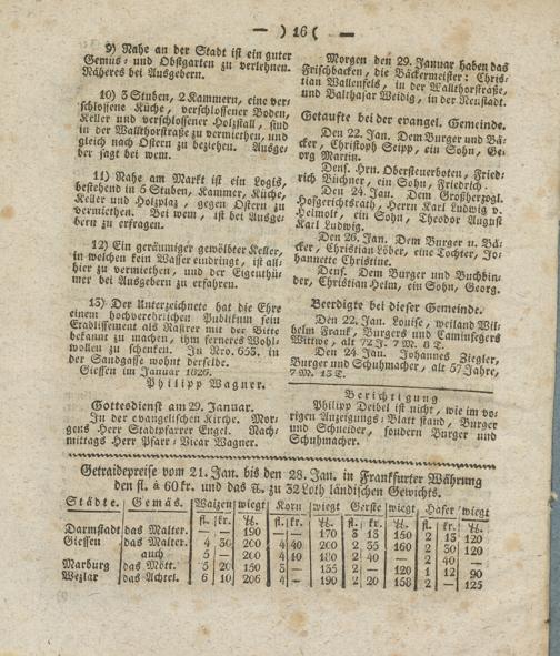 Getmidepmse vom 2 l. Jan. bis dm 28. Ja», in Frankfurter Wäbrm^ ten fl. a 60 fr. und das D. zu 32Loth ländischen Gewichts. ? ~