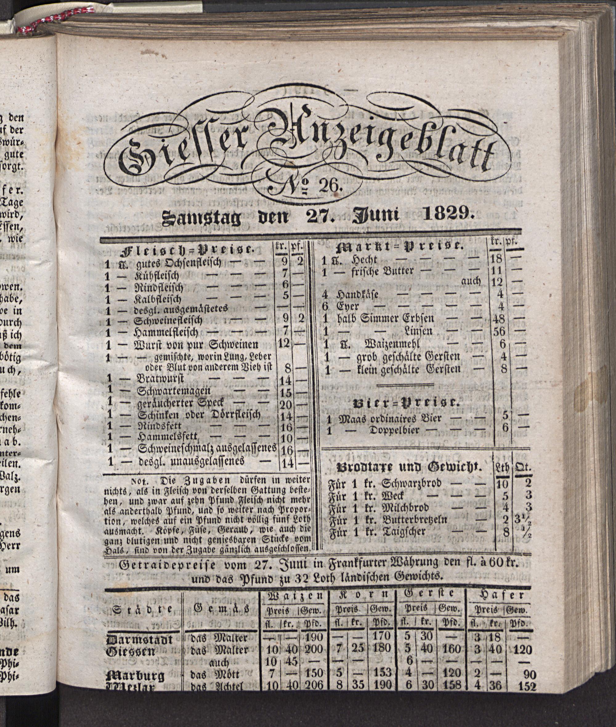 Getraivepreise vom 27. Juni in Frankfurter Währung ven fl. äöüfr.