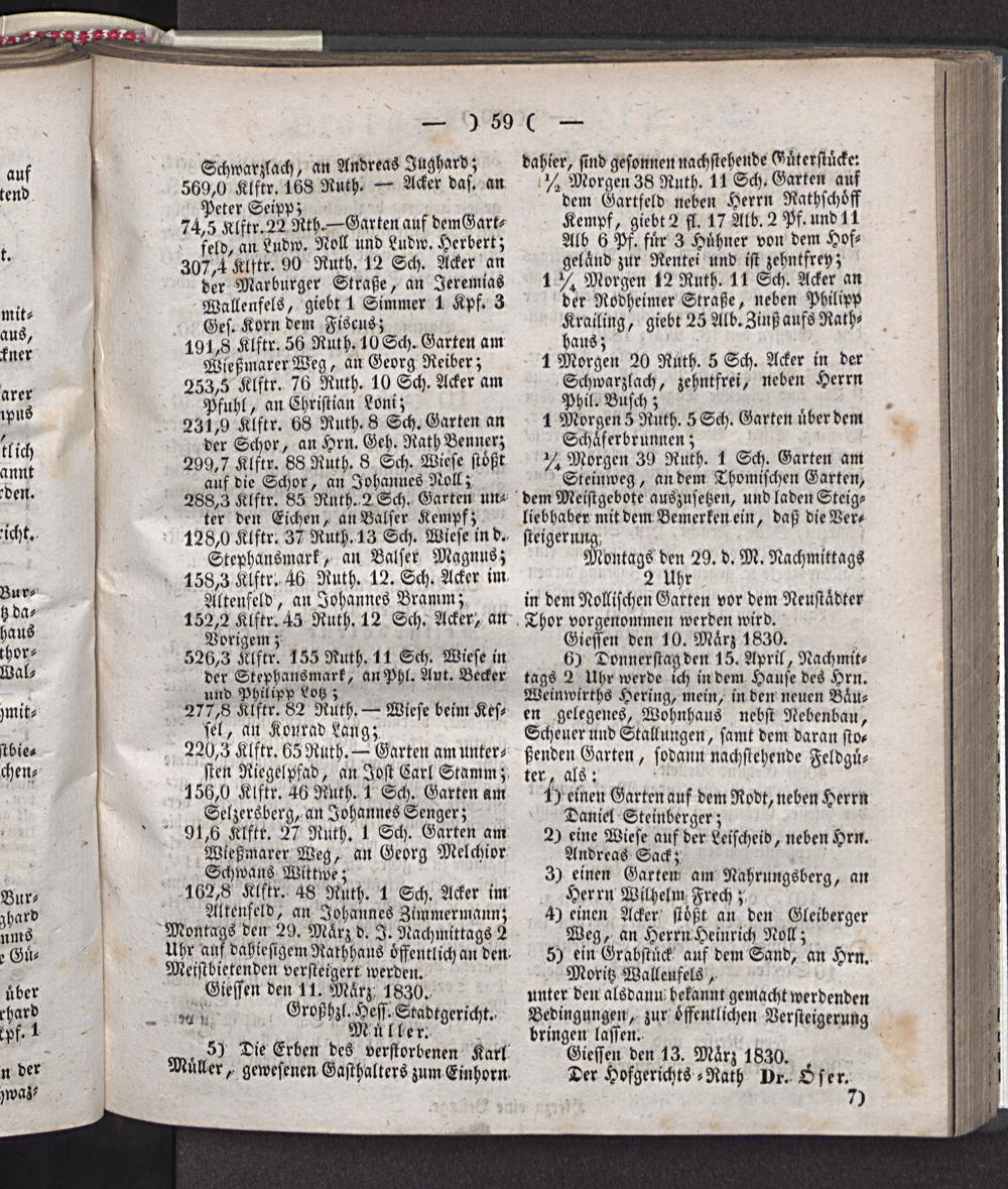 Giessen den 11. März' 1830. Großhzl. Hess. Stadtgericht..
