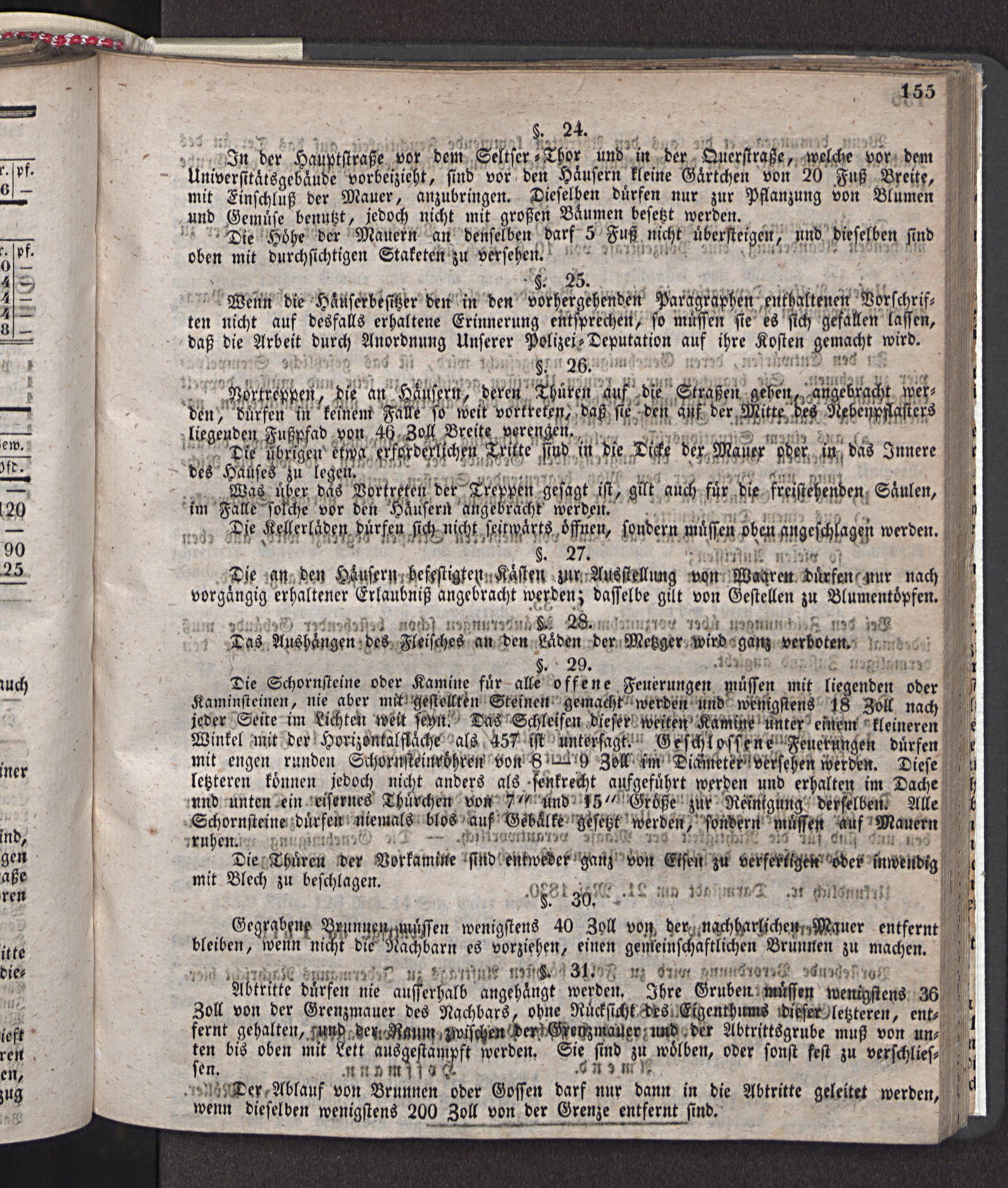 Abtritte dürfen nie ausserhalb angehängt werden. Ihre Gruben müssen wenigstens 36 ! , Zoll von der Grenzmauer des Ngchbars, ohne Rücksicht dds .Eigenthmns .dieser^letzteren, ent# ’ 1 ferne gchalteii, -und dei.'Minn.Mschen^er-WeyzmMcrymd der Abtrittsgrube muß von un#i teil bis oben nut Lett ausgestampft werden, Sie sind zu wölben, oder sonst fest zu verschliessen. .n v.»mild V- Au r ii. v.