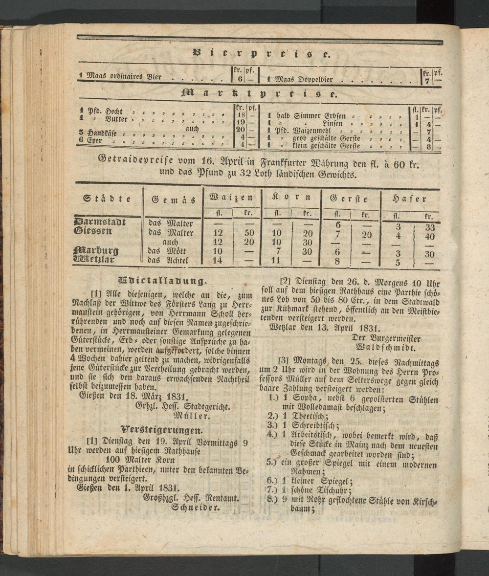 Gießen den 1. April 1831.
