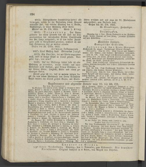 Im Darmstädter Haus-. Hr. Schauspieler Lagt,! » Bera- stadtlauterthal, Hr. Schullehrer Katz t>. Rülfenrod, H>- ec;s, ncr ». Tyrol, Hr. Wagner u. Fischer v. Eichelsachsen' Hr Goll u. Frau v. Frankfurt. '