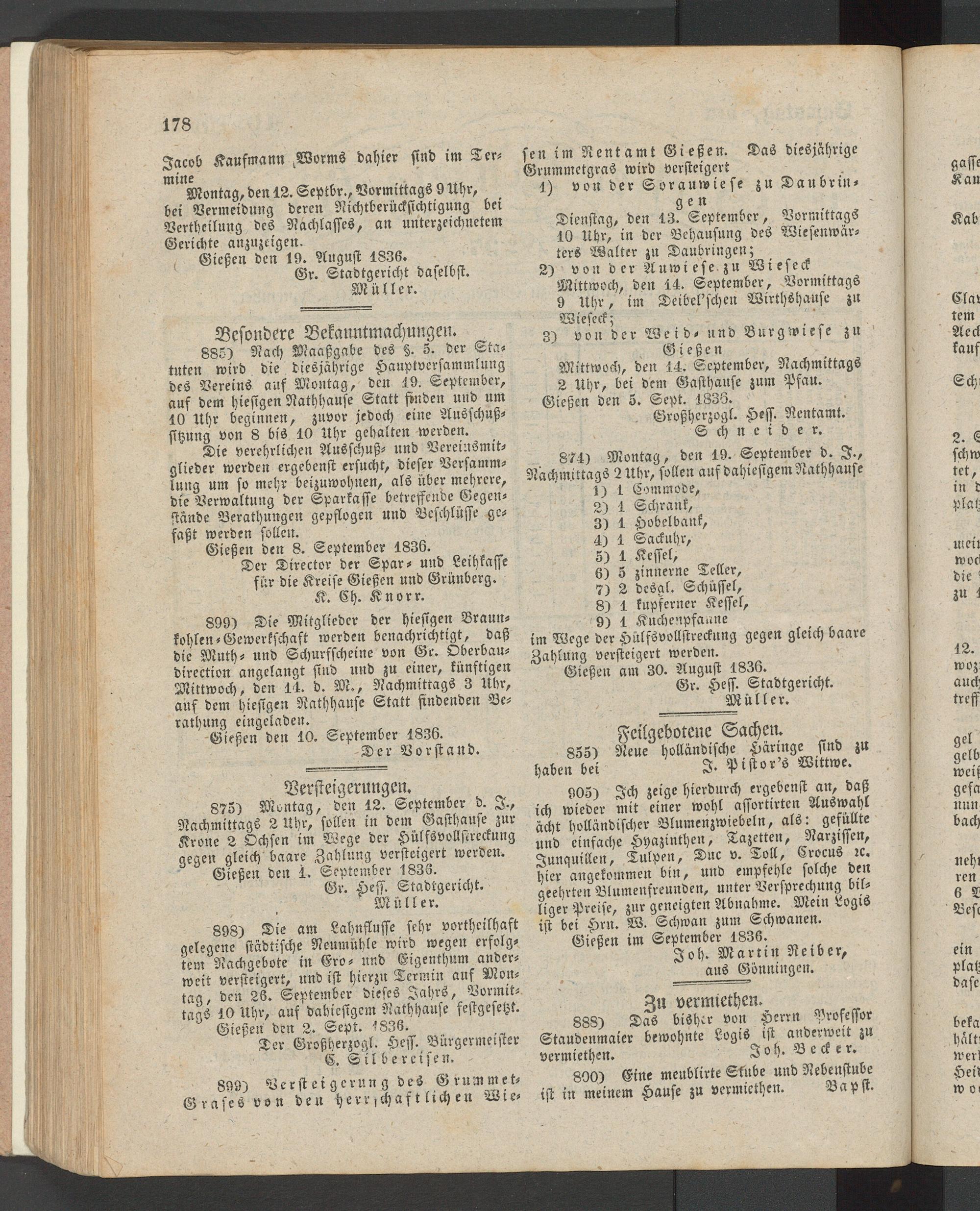 898) Die am Lahnfluffe sehr vortheilhaft ael-gene städtische Neumühle wird wegen erfolgtem Nachgebote in Ero- und Eigenthum ander- weit versteigert, und ist hierzu Termin auf Montag, den 26. September dieses Jahrs, Vormit- tags 10 Uhr, auf dahiesigem Nathhause festgesetzt.