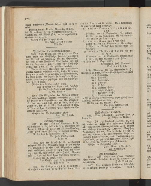 885) Nach Maäßgabe des §. 5. der Statuten wird die diesjährige Hauptversammlung des Vereins auf Montag, den 19. September, auf dem hiesigen Nathhause Statt finden und um 10 Uhr beginnen, zuvor jedoch eine Ausschußsitzung von'8 bis 10 Uhr gehalten werden.