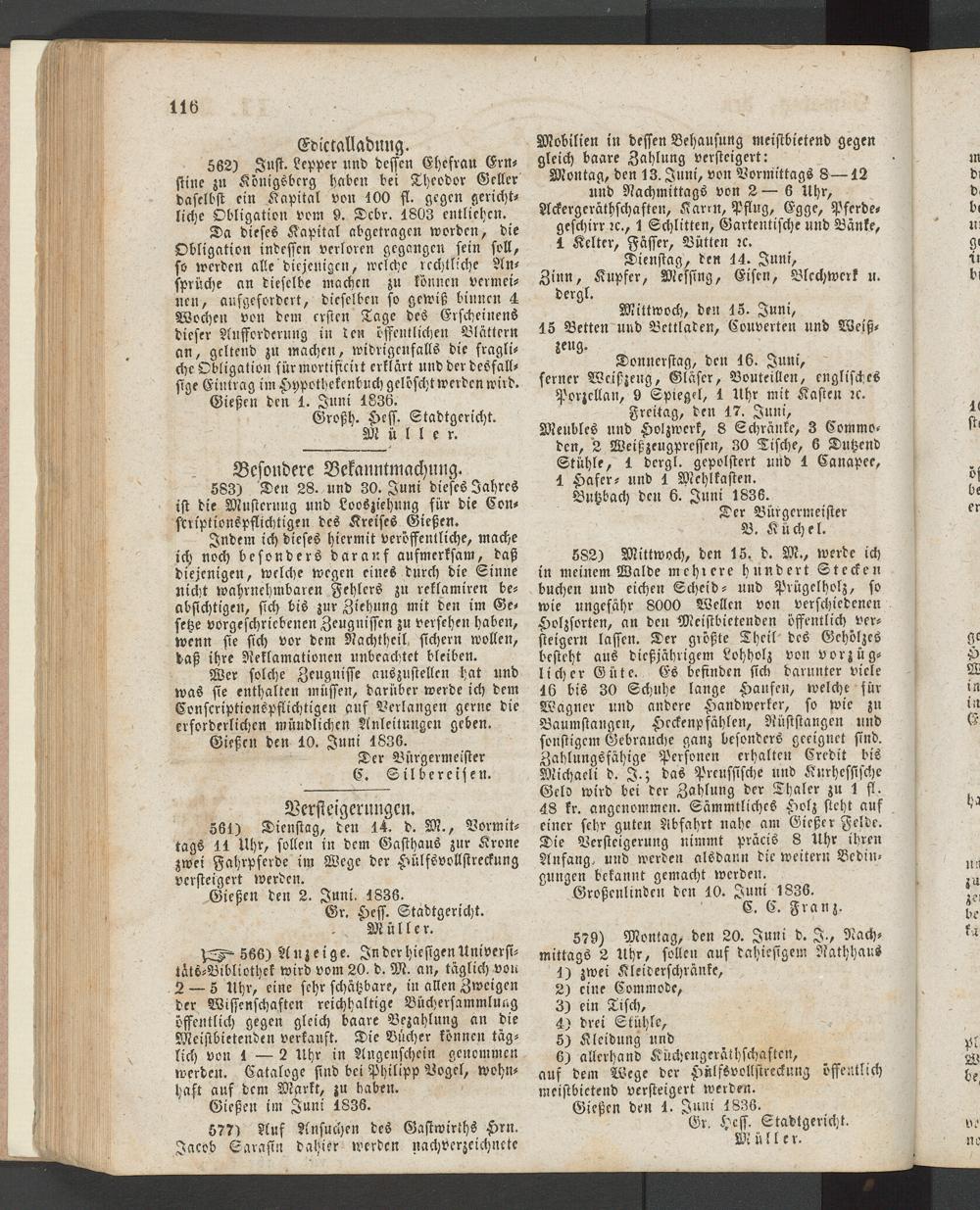 Gießen den 2. Juni. 1836.