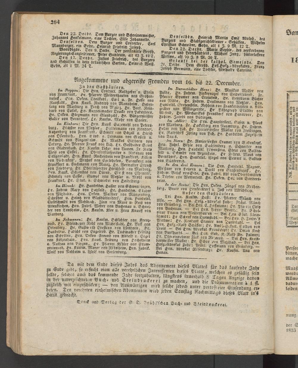 im Einhorn: Die Hon. Kauft Sagemehl von Petersburg, Höchster, von Wetzlar, Hutkermann von Rondorr Katzenberg von Frmchurt, Schmidt ron Echzell u. Hirsch von Offenbach, Hon. e? tue. v. Lebmann von G eßen u Schmidt von Dingeuleim. Hr. Musikus Eichhorn von Coburg, Hr. Pfarrer F>rank von Lich, Hr. Gasthalter Sries von Gladenbach, Hr Kauf,». Lichec von Linnen, Fr. Rat- Weis von Cassel, Hr. Ob-rforsiinspector v. Rabenau von Eeligenimdt, Hrn. Kaust Rnchenhein von Frankfurt, uilian von Büd-nkop^, Benhof von Cailshafen, Barenkern von Frankfurt u. Buchmann ron Mainz, Hr. Vermalter Storch von Friedberg, Hr. Ober-Nspector Hirschfeld rot, Marburg, Hrn. Kauft. Schambos von Düren, Clrst von Elpenrod, Schmalz von Cassel, Gnmpf von Wetzlar u. Mvhl ron Frank-urt, Hr. Etud. v. Echwiedel von Heidelberg.