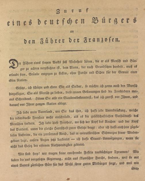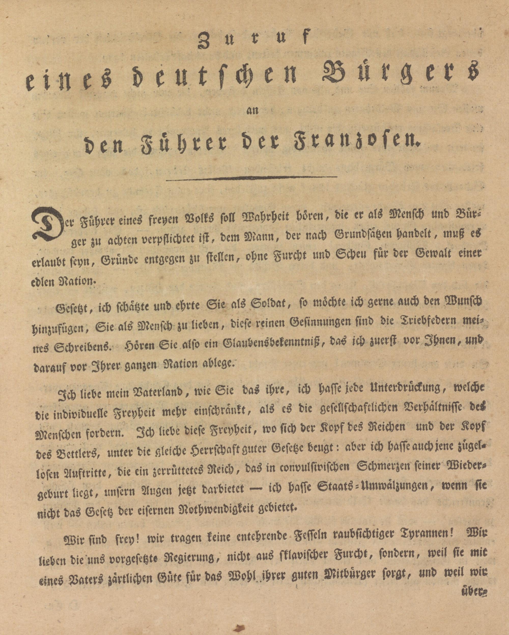 FW-«» eines freuen Volks fort Wahrheit hören, die er als Menfch nnd Bür-' 8cr achten verpflichtet ist, dem Man», der nach Grundsätzen handelt, muß es erlaubt stp». Gründe entgegen zu stellen, ohne Furch, und Scheu für der Gewalt einer edlen Nation-