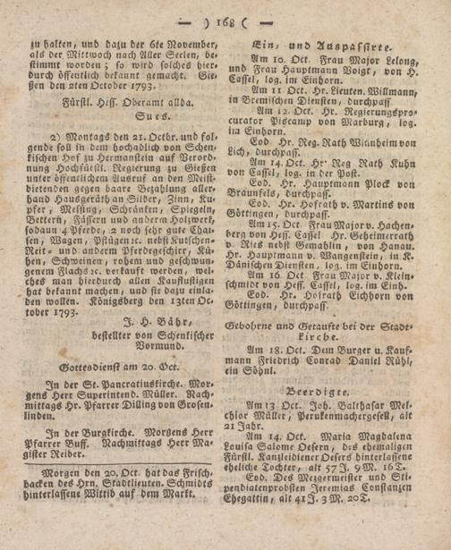zu halten, und dazu der 6te November, ofd der Mittwoch nach Aller Seelen, be» stimmt worden; so wird solches hier, durch öffentlich bekannt gemacht. Gie» ßen den 2ten Octoder 1793.