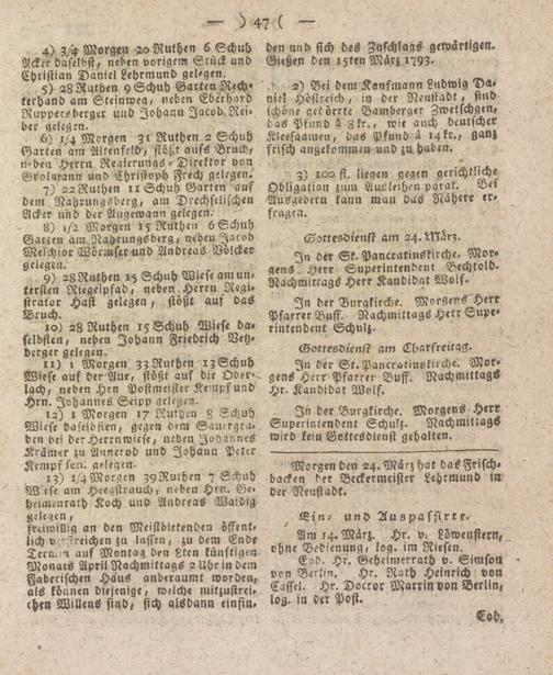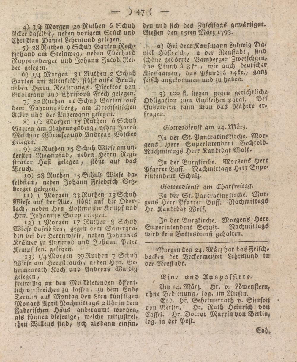 den und sich des Zuschlags gewärtigen. Gießen den iStenMärz 1793.