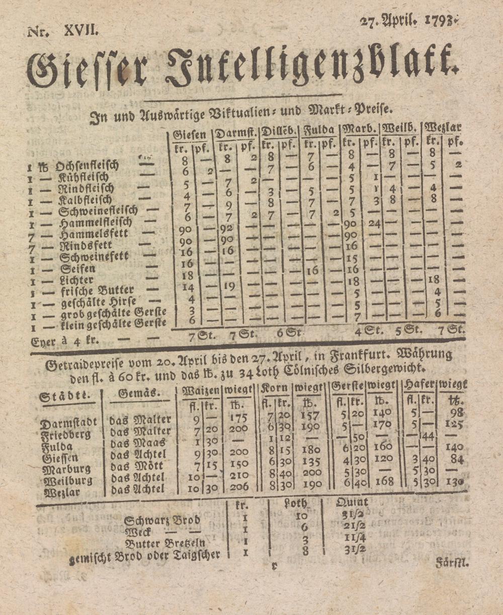 In und Auswärtige Viktualien- und MarktPreise
